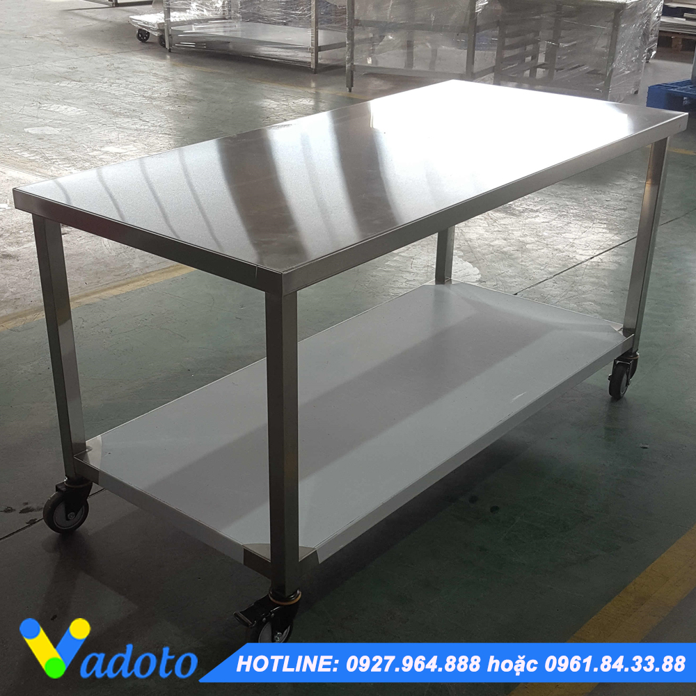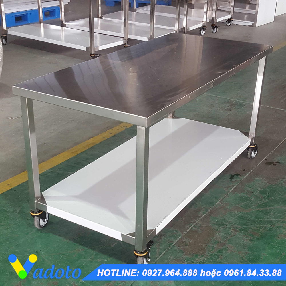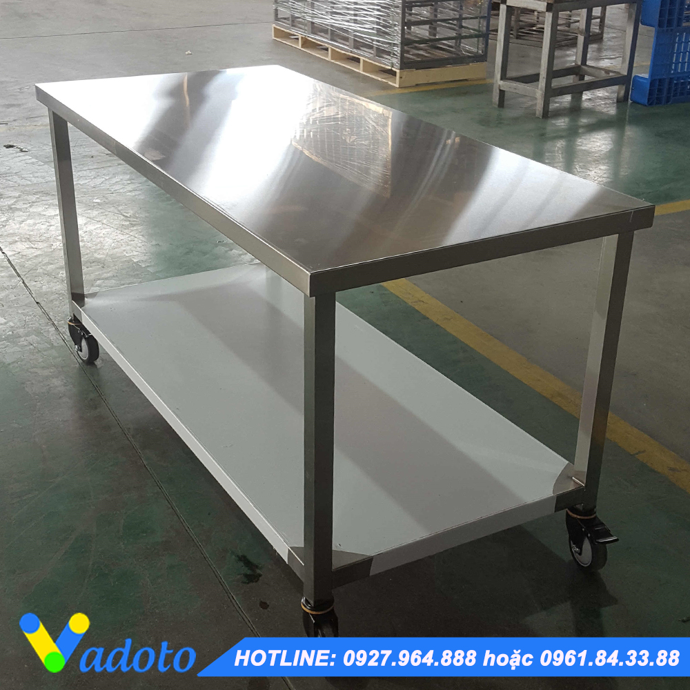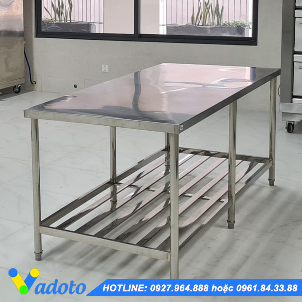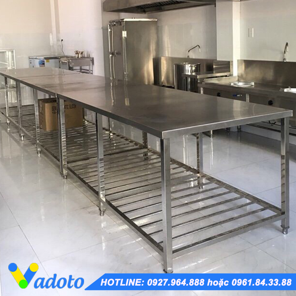 + Chân bàn bằng inox Ø38mm, có chân chỉnh.Giằng chân bằng Inox ống D22.