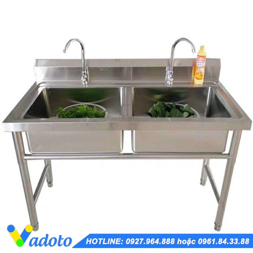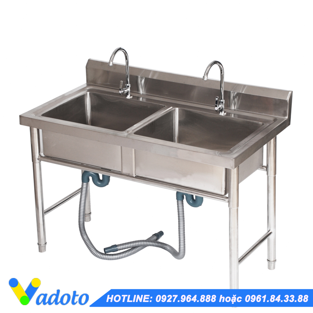 Chậu rửa đôi thường khi lắp đầy đủ vòi xì phông, lọc rác: