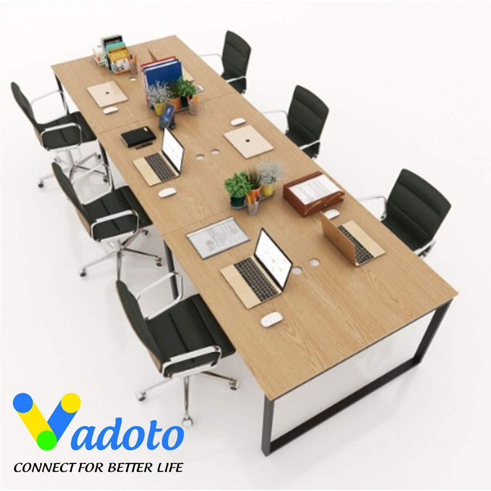 Bàn họp văn phòng VP01 dùng cho 08 người ngồi có khung bàn bằng sắt sơn tĩnh điện và mặt bàn bằng gỗ công nghiệp. Bàn Họp của VADOTO đa dạng trong kiểu dáng, mẫu mã với sự thiết kế hiện đại.
