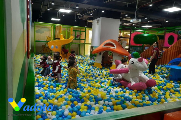 Khu nhà bóng rộng rãi, được đầu tư các thiết bị vui chơi đẹp mắt, thân thiện với các bé