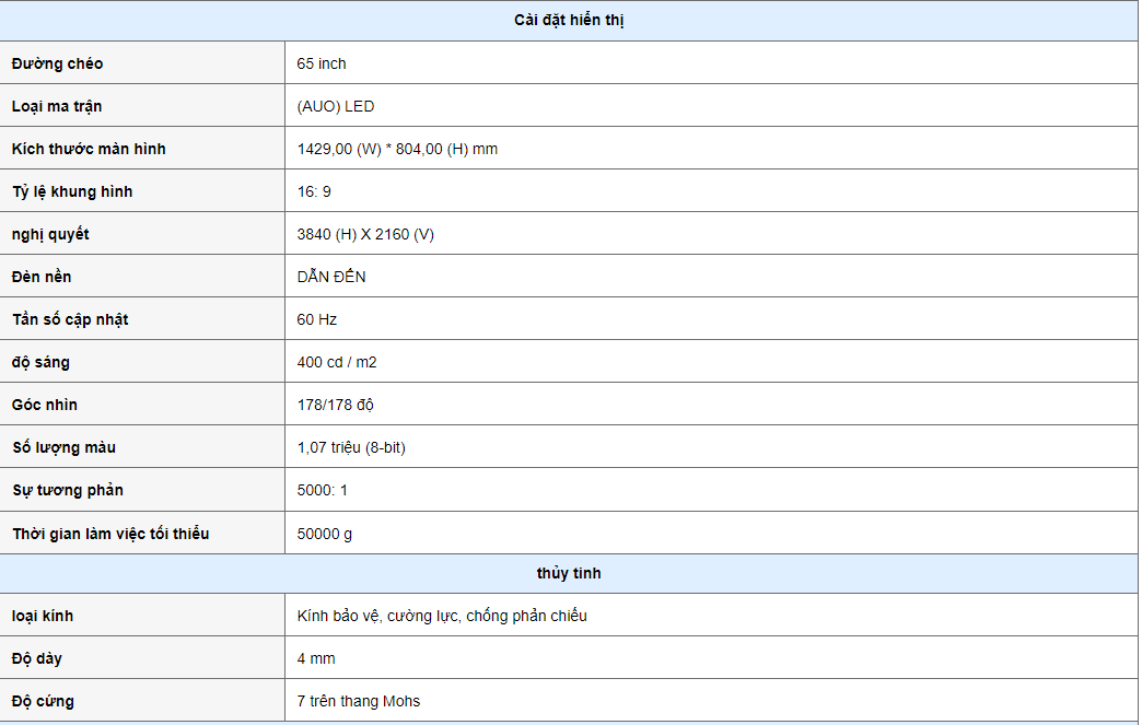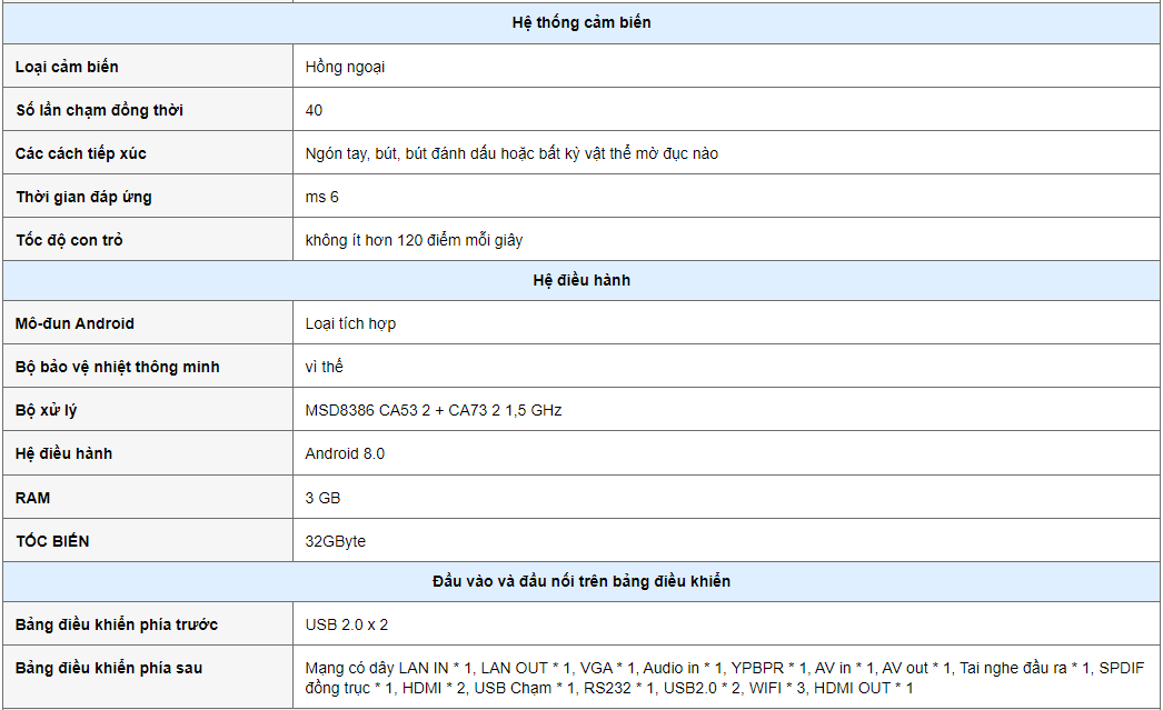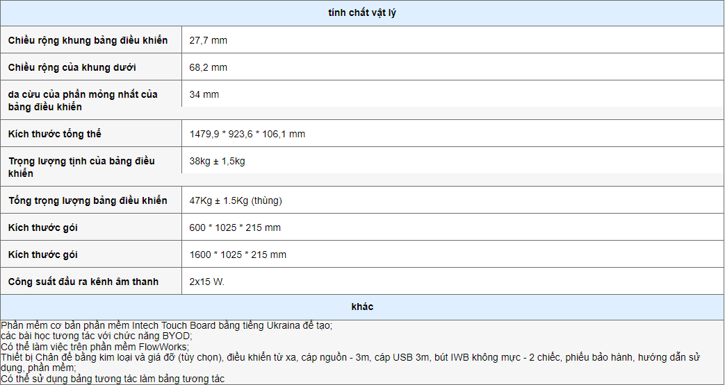 * Thông số kỹ thuật của TS-65 LED Bảng điều khiển phẳng tương tác, Bảng điều khiển tương tác thông minh :